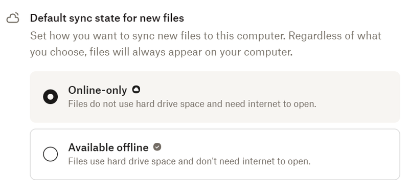 That basically means that "online only" is only relevant to files added through the browser. It doesn't consider whether a file will be newly added to the current device. That is bad design, I have to say. - Rich11 months ago