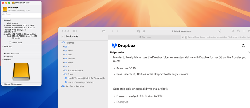 Hi Jay, Am I reading your response correctly to mean that, notwithstanding the support article, it is NOT possible to use File Provider with a Dropbox on an external encrypted APFS drive if the user's home folder is not on the boot drive? That's a strange limitation if so (and I'd go so far as to call it a bug).