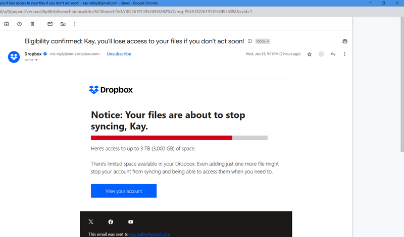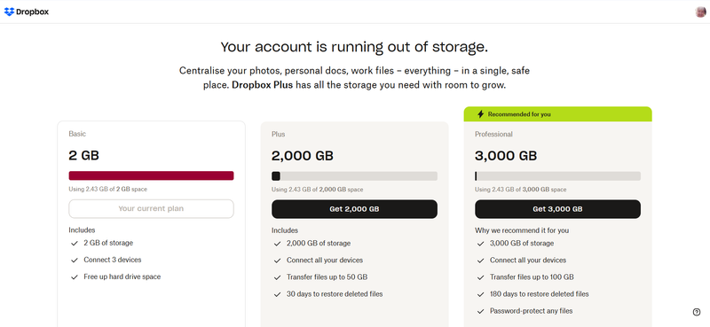 Dropbox says my storage is full, but I don't have any files in my account.