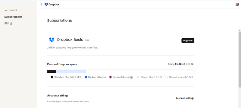 Can you check the plan tab in your account settings, and let me know what it reports there? Do you have any shared content taking up space in your account?