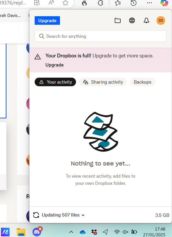 If you have a lot of files stored on your Dropbox account, upgrading may be the best option in this case, but I’d like to check if there could be another alternative instead.