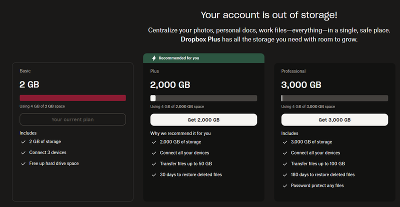 By mistake I copied some big files to DropBox today, exceeding my quota.