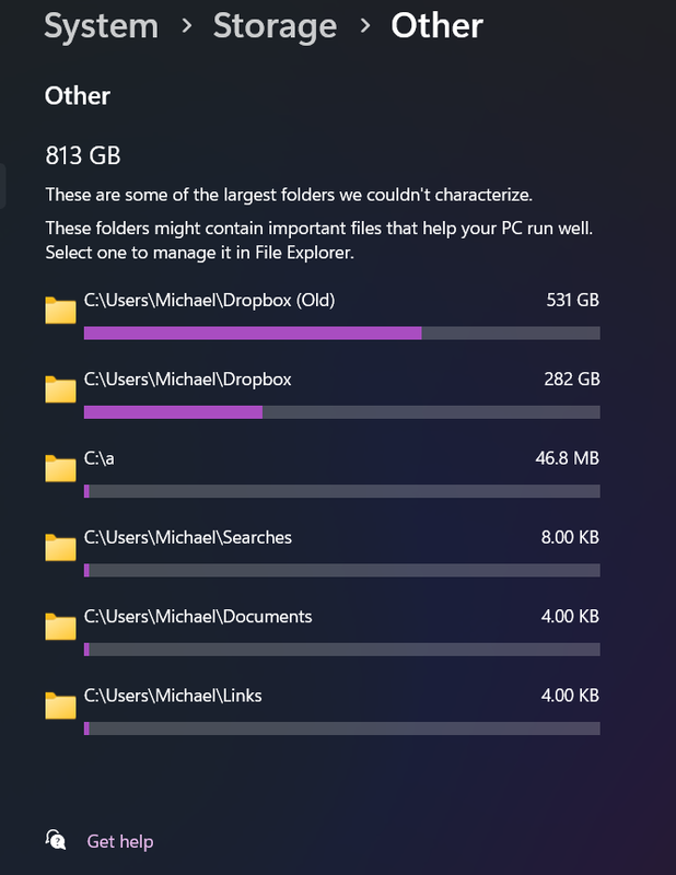 I'm not sure I understand what you mean. If I go in the Dropbox folder and highlight all the subfolders and try to copy them, I get the same error as before. There are too many files to copy them one by one. Is there any way to tell the folder to delete or stop keeping track of the online-only files? It looks like they're still showing up in the folders. When I view the properties of the individual files, they have a non-zero size (but 0 bytes on disk).