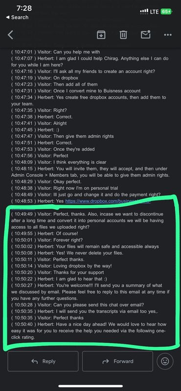 I’m writing to raise a serious concern regarding a written assurance from Dropbox support that now appears to be contradicted.