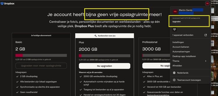 I'm using 750 MB out of 12 GB of space but it says that I need to upgrade to join a folder