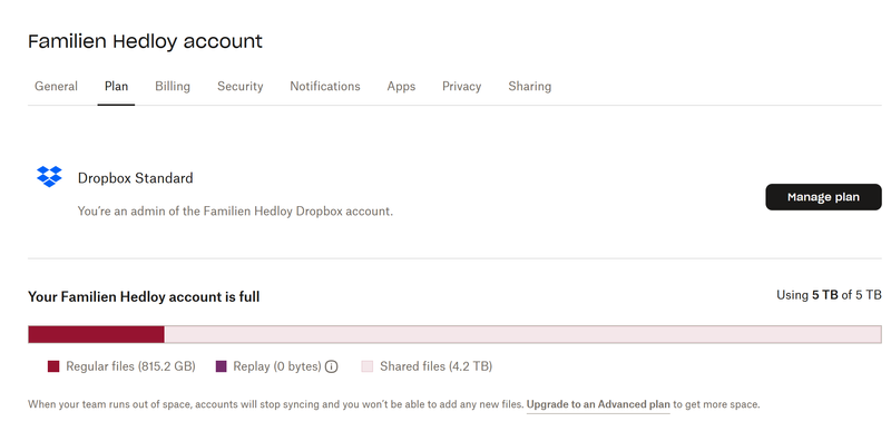 I have a Dropbox plan with 5Tb. It says I have used more than that, but when I look at each user's storage it does not even add up to 2Tb. What is going on and how do I fix it?
