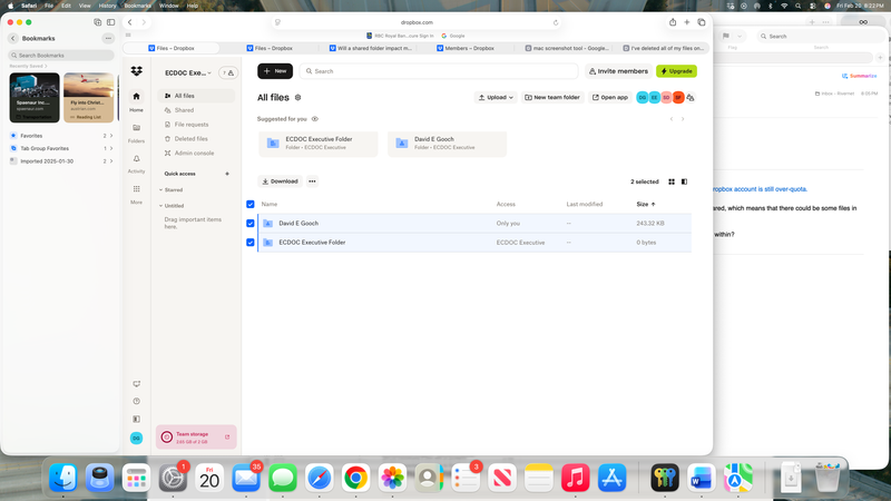Your Dropbox account may be over quota (2.65 GB used of a 2.0 GB limit), which can pause syncing and prevent changes until you’re back under the limit. The key thing to know is that other members’ local files do not affect your Dropbox storage unless the content is actually stored in Dropbox.