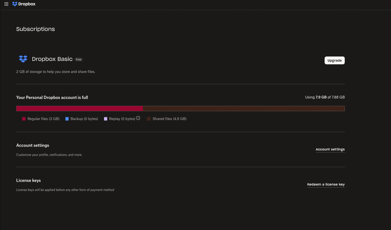 I've used 6,5.. but dropbox seems like it can't update that I have space available for new files.