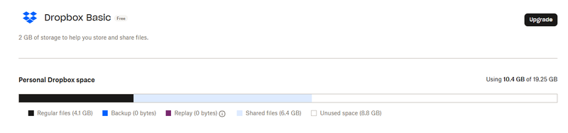 I use Dropbox almost daily and always have, although only in concentrated areas (many of the files and folders may not get looked at regularly). The Plan says what I expected, which is that I am using 10 of 19 GB (having deleted a lot of files yesterday in a panic). My issue is that Dropbox is sending me messages about only having 2GB and saying it is not synchronising anything as a result.