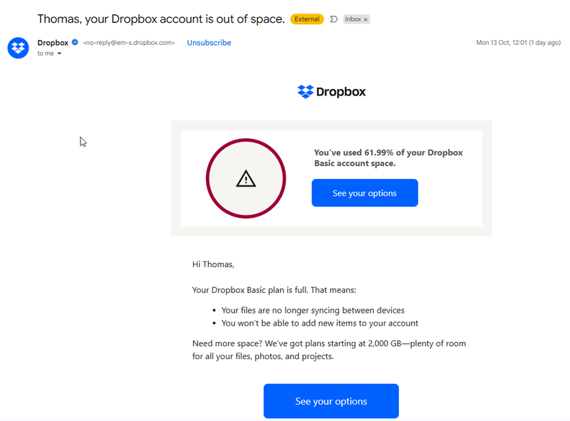 Those emails from Dropbox are still coming!