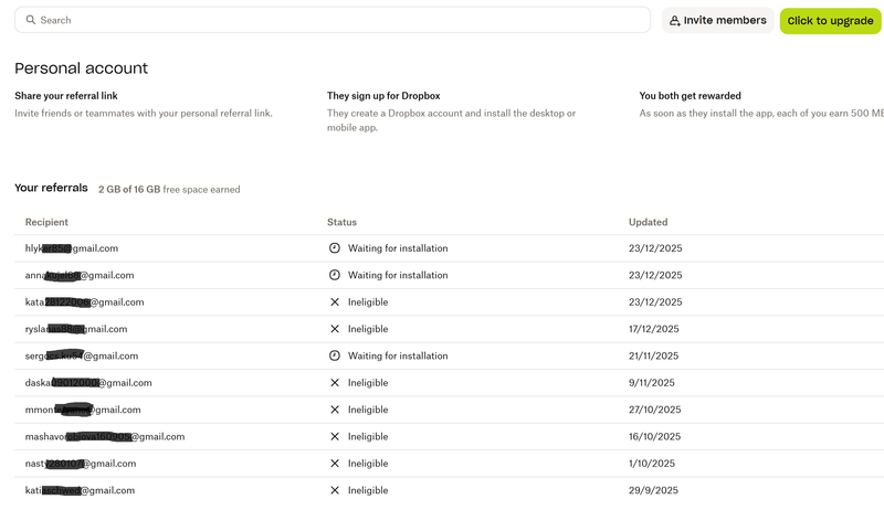 If you've ensured that your referrals didn't have a Dropbox account already, may we reach out via email to have a further look internally?