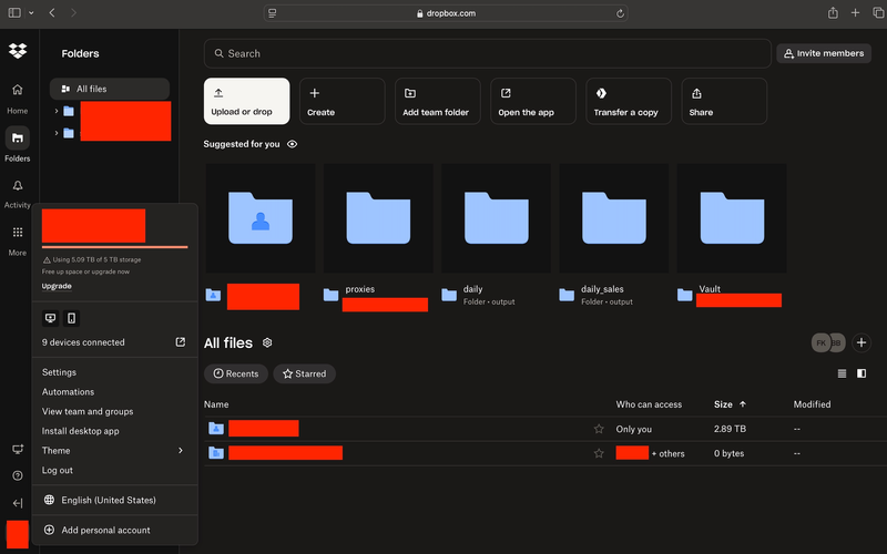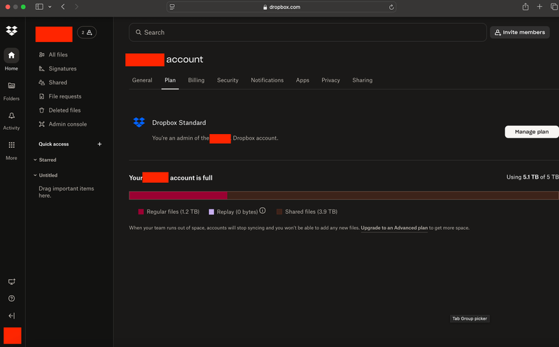 Screenshot 1: Note that I currently only have a single folder that's now 2.89 TB in size but my account still says I'm sing 5.09 TB.Screenshot 2: Plan page (also wrongly claiming I'm using 5.09 TB).