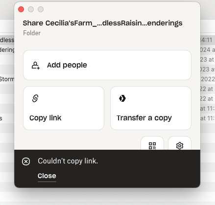 I can Transfer the files, but I can't copy the link directly from here which is super frustrating.