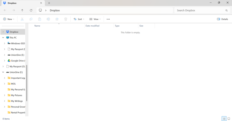 NOTE: I have deleted the app from my phone. I use Windows 11 and below is a screenshot showing that my DropBox is empty