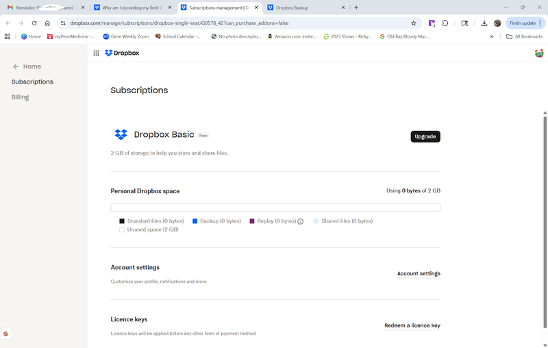 In regards to the prompt asking you to upgrade your account: did you receive an email about this or a notification inside your Dropbox account?