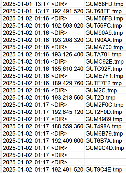 - If the directory name is GUMxxxx, the file name will be GUT(xxxx+1) where xxxx is a hex number. Thus, these are related.