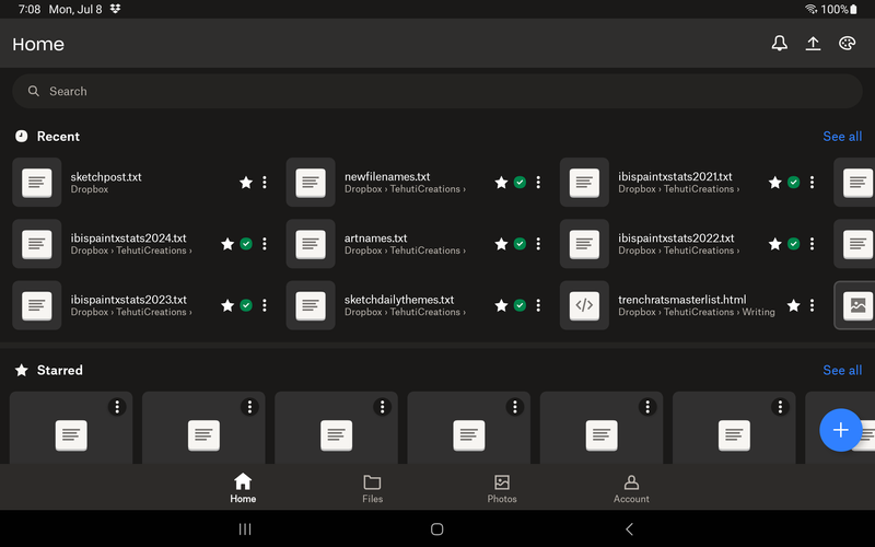 I've cleared the cache a few times, closed and reopened, force stopped, ran device maintenance (Samsung Galaxy Tab), rebooted, no change, except now on the homepage, recent files keep showing the blue "syncing" icon even though they are done syncing when I check the offline files page (green checkmark).