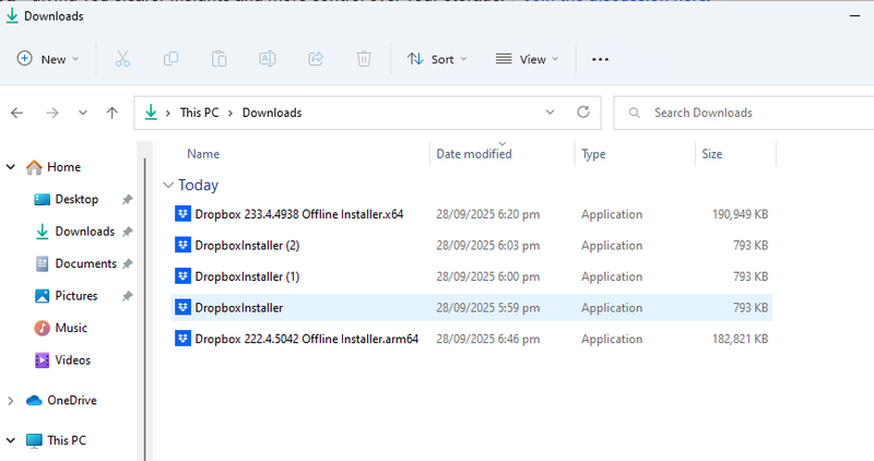 I have downloaded several versions on the installer for dropbox on a new to me lenovo PC running windows 11