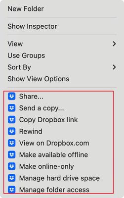 Can I delete the Dropbox context menu items in Mac Sonoma 14.4.1?