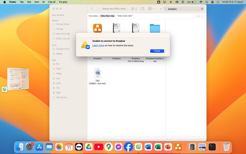 Cannot log in and use the Dropbox desktop app on macOS Sonoma 14.7.8