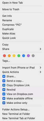 I posted the said menu in case it wasn't call "context menu". Anyway, after the big update for macOS, these dropbox menus not working for me. Nothing happened when I clicked on share, copy dro...