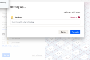 "Couldn't complete setup" error message when setting up Dropbox Backup