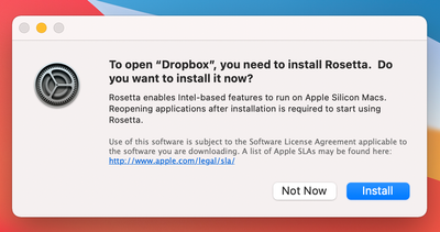 Native Apple silicon support is now fully available. All users with Apple silicon devices will receive the native version of Dropbox automatically. If you would like to update your device manually, you can do so by clicking on the latest Stable Build and downloading the Offline Installer (Apple Silicon) file. For more information, visit the Dropbox Help Center.If you need assistance with anything else, please feel free to create a new thread and our community team will be happy to assist.