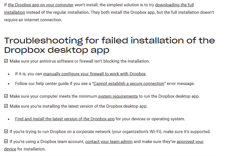 Dropbox desktop app won't install on Windows 11 and gives me an error