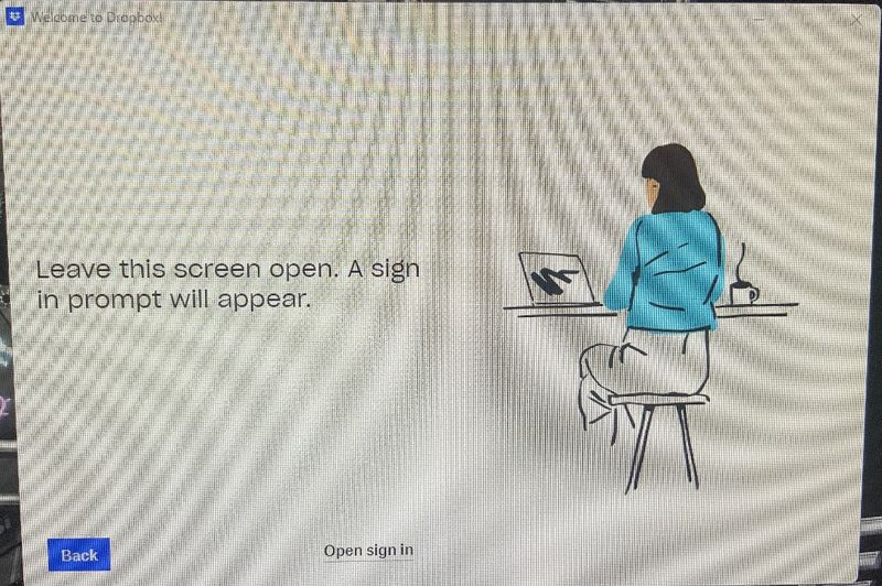 However, clicking on ‘open Dropbox’ did nothing, even after waiting for 10 minutes.