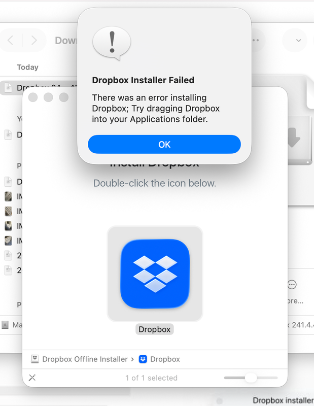 Dropbox fails to install on my new Mac M4 running Tahoe.