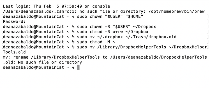 I've tried multiple time to install dropbox using both the regular install and the offline install. I enter my password and then get this error (and if I drag the dmg to applications, I just get a sh...