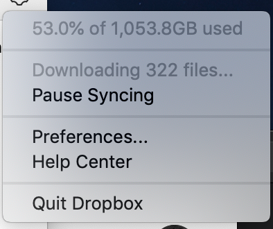 Dropbox indicates 'downloading xx files' _forever_