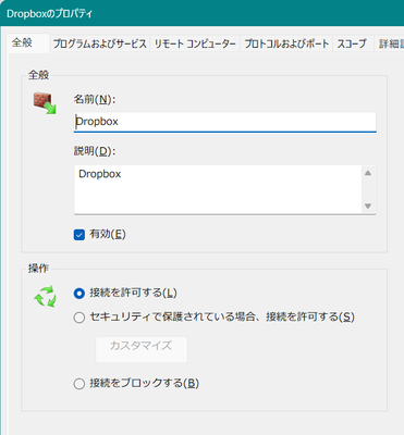 Sorry, I don't know if Windows Defender Firewall is strict or not. Even if you set a sending rule called "Dropbox" in another application, the rule will be removed every time you update the Dropbox desktop application. I found that renaming the rule does not delete it. Update the Dropbox desktop application. It's strange that the "Dropbox" rule is removed.