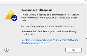 After years of successful use Dropbox stopped working on my Mac Pro a few days ago. It keeps trying to launch (I see it in the menu bar) and then immediately quits. I can't manually launch it. I get ...