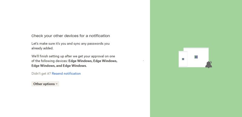 No, I cannot access Passwords on any of the devices I've tried by launching from the browser extension, a link in thee main Dropbox desktop App & from desktop browser in MS Edge 11 & 10. I've tried on at least two of the older devices as well as the new one. I've also uninstalled & reinstalled the extension and cleared my cache. So, what happens is I log in w/ password, then 2FA, once I've cleared that, this is the page that comes up. So, I go to another device & there's no Edge Windows notification (I assume that means a notification in MS Edge browser... I've looked in the standard places, searched exhaustively, and logged into Dropbox on that device and looked for notifications there in both the app & via edge web browser. No help at all. I did take download the Dropbox Passwords log history file, if it might be helpful, looks like it's the attempts over the last month