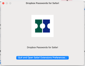 DROPBOX PASSWORDS WILL NOT GO BACK INTO SAFARI EXTENSIONS