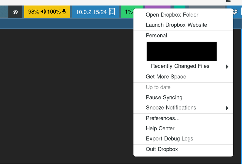 Dropbox says my environment doesn't support tray icon, by it does