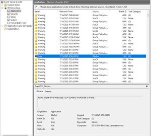 I am running Dropbox version 228.4.5567 on Windows Server 2025, and Dropbox frequently shuts down with the following error: Failed to get driver message: (-2147024890) The handle is invalid