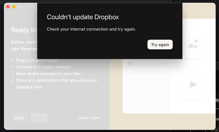 Application Affected Dropbox Desktop App Device Mac Studio Operating System/Browser (if using the web) macOS 15.3 Dropbox App Version (if using the app) 239.4.8301