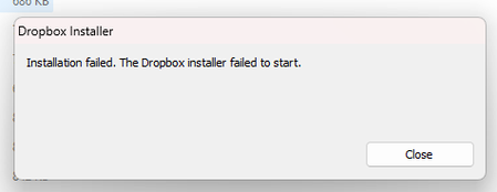 Getting "Installation failed. The Dropbox installer failed to start." error on my desktop app.