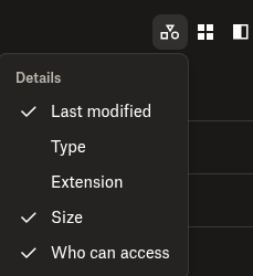 Just as a side note, this is happening in my DB Team account for my work. I also have my own personal DB account which I switch between the two. When I switch to the personal account, even though I had set the Size header on my team account, it shows up also in my personal account as well even though I hadn't set it there. I tried logging out of both and just logging into my personal DB account. I still don't get the inverted caret to click on the menu.