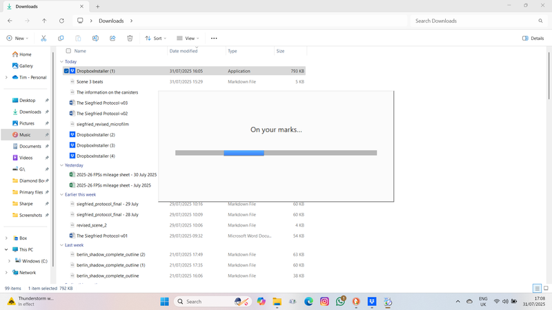 Now it won't reinstall at all - I run the installer, it says "on your marks" and nothing happens.
