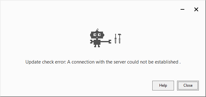I see a "connection with the server could not be established" error while updating my desktop app.