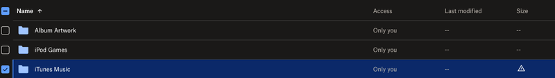 When I select "calculate size" I see an error symbol like the screenshot below. This is in Chrome. When I try using Safari I can't get the Size column to appear.