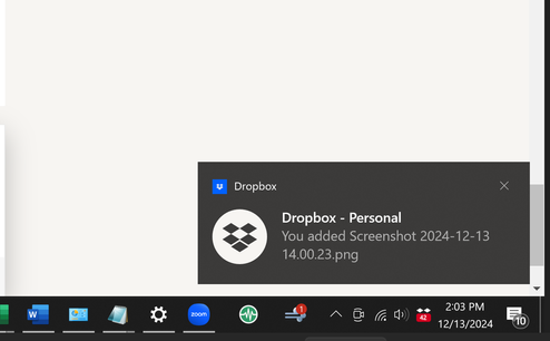 I just quit the Dropbox app on the Windows 10 Pro machine, then pressed "Print Screen". No screenshot was put in the Screenshot folder, and I got no preview of the screenshot in the bottom right corner of my desktop. I expected this behavior, obviously, because I turned off Dropbox.