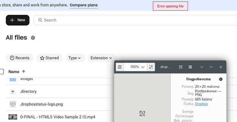 Thanks for responding. As you can see it doesn't happen on any browser! For display purposes, on screenshots is Firefox, but actual issue is how Dropbox desktop application responses (take a look on last screenshot)!