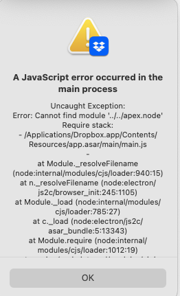 Javascript error occurred in the main process on Mac OS 12.7.6