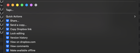 Lost Dropbox Quick Actions on Mac - "Make Available Offline", etc