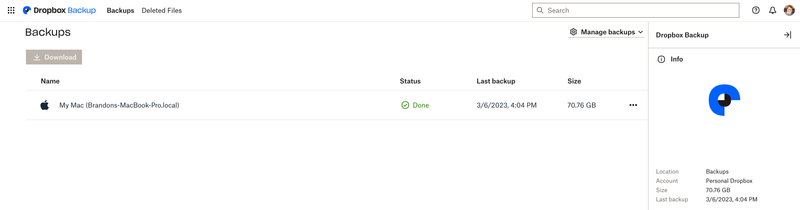 Thanks, Megan! I appreciate your help. Here are screenshots of both views. When I click "Manage backups," I get the third screenshot. I don't see a folder path listing on that view. Please let me know if I can provide further info. Thanks again!