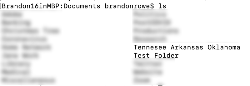 However, when I go to this same view in Terminal (or in Dropbox in the browser), all of my files/folders are visible. I'll attach a mostly blurred screenshot below to show this. This is the exact same folder within the backup as shown in the Finder screenshot above. You can see one of my old folder names above "Test Folder," which again is the same folder I just made and is also present on the Finder view above.